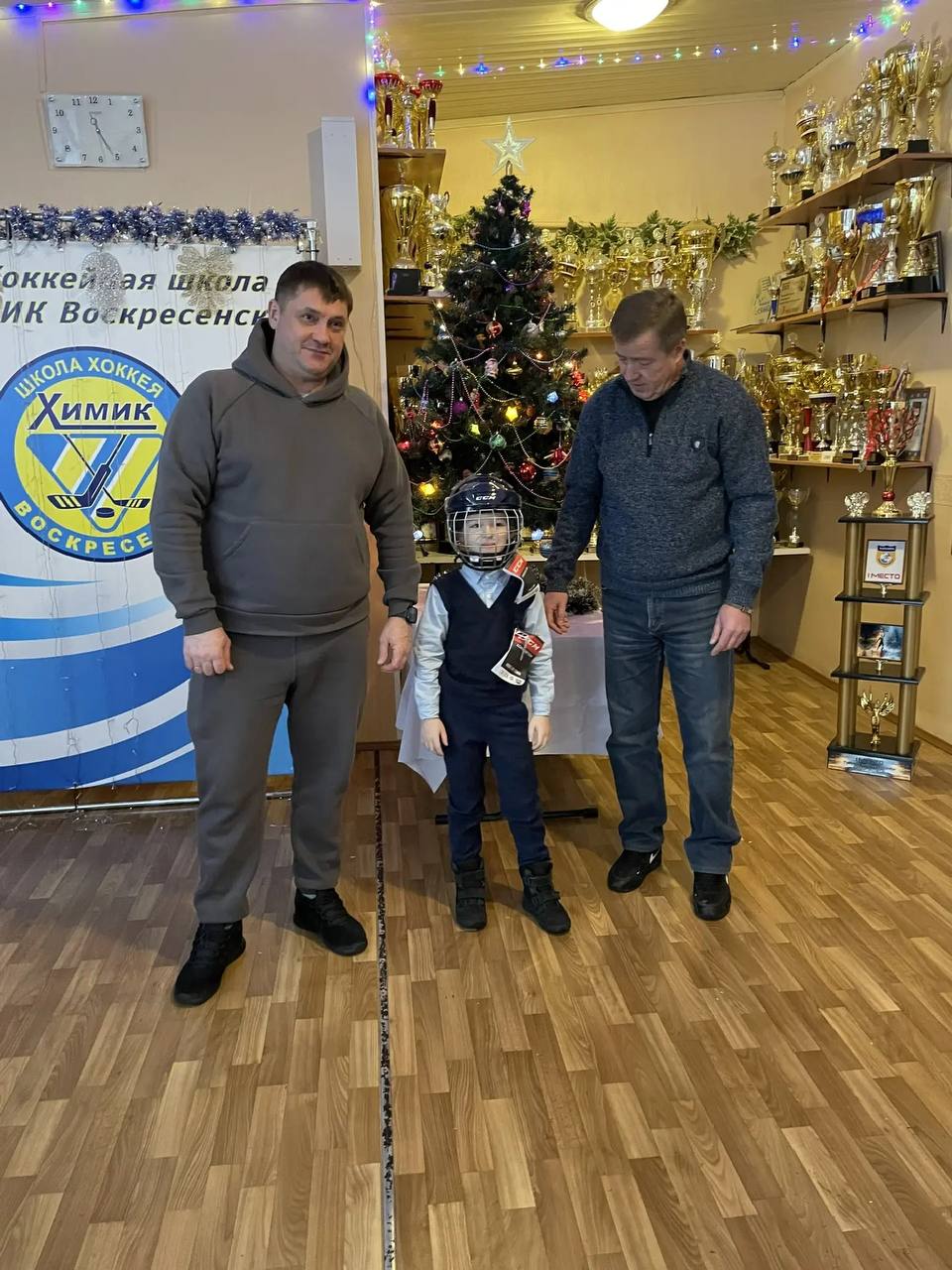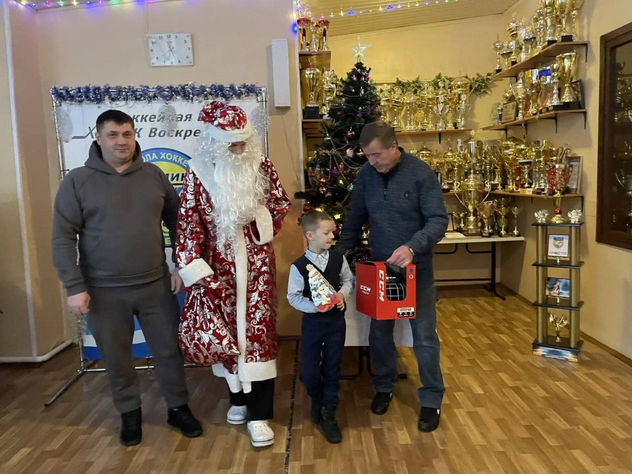 Директор МБУ ДО "СШОР "Химик" принял участие в "Елке желаний", поздравив Жоренко Георгия, 2017 г.р., вручив ему хоккейный шлем.